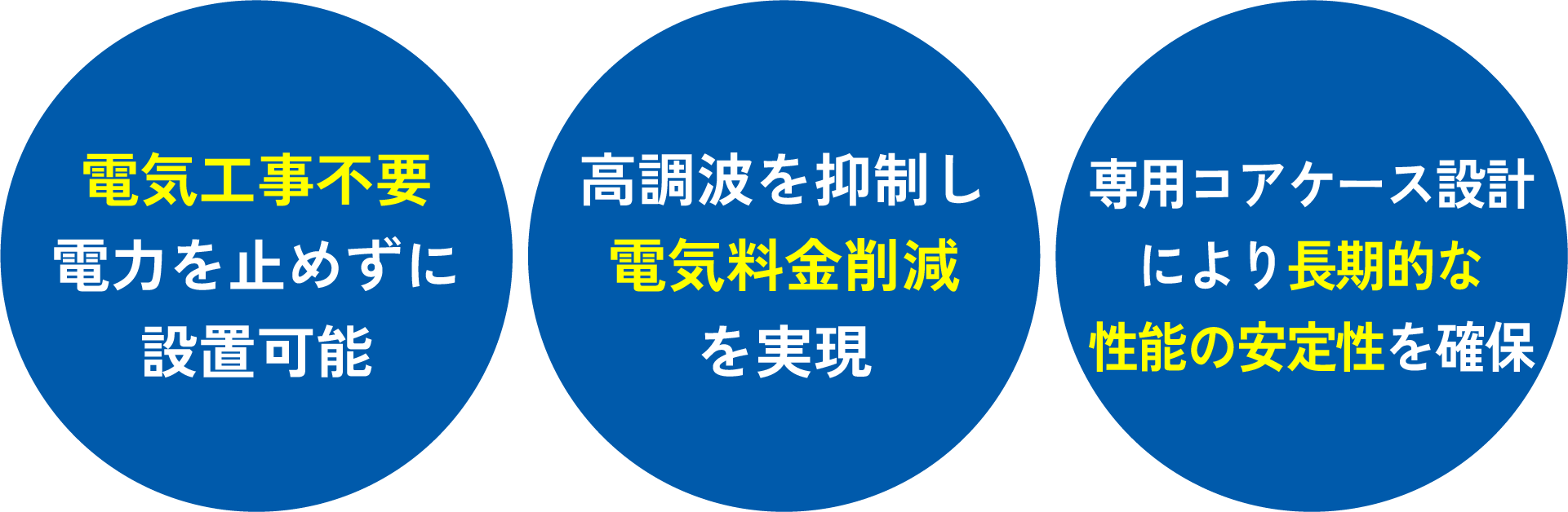 分電盤内のブレーカー系統ケーブルに装着するコア型の電力改善デバイスです。