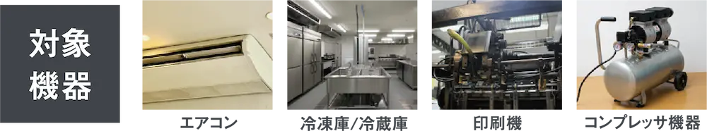 ※インバータ制御を行っており、且つ電力使用量の大きい機器で電力削減効果が見込めます。 空調方式について、集中熱源方式が導入されている施設は対象外となります。